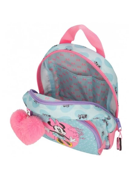 Mochila de 19x23x8 cm. fabricada en poliéster.